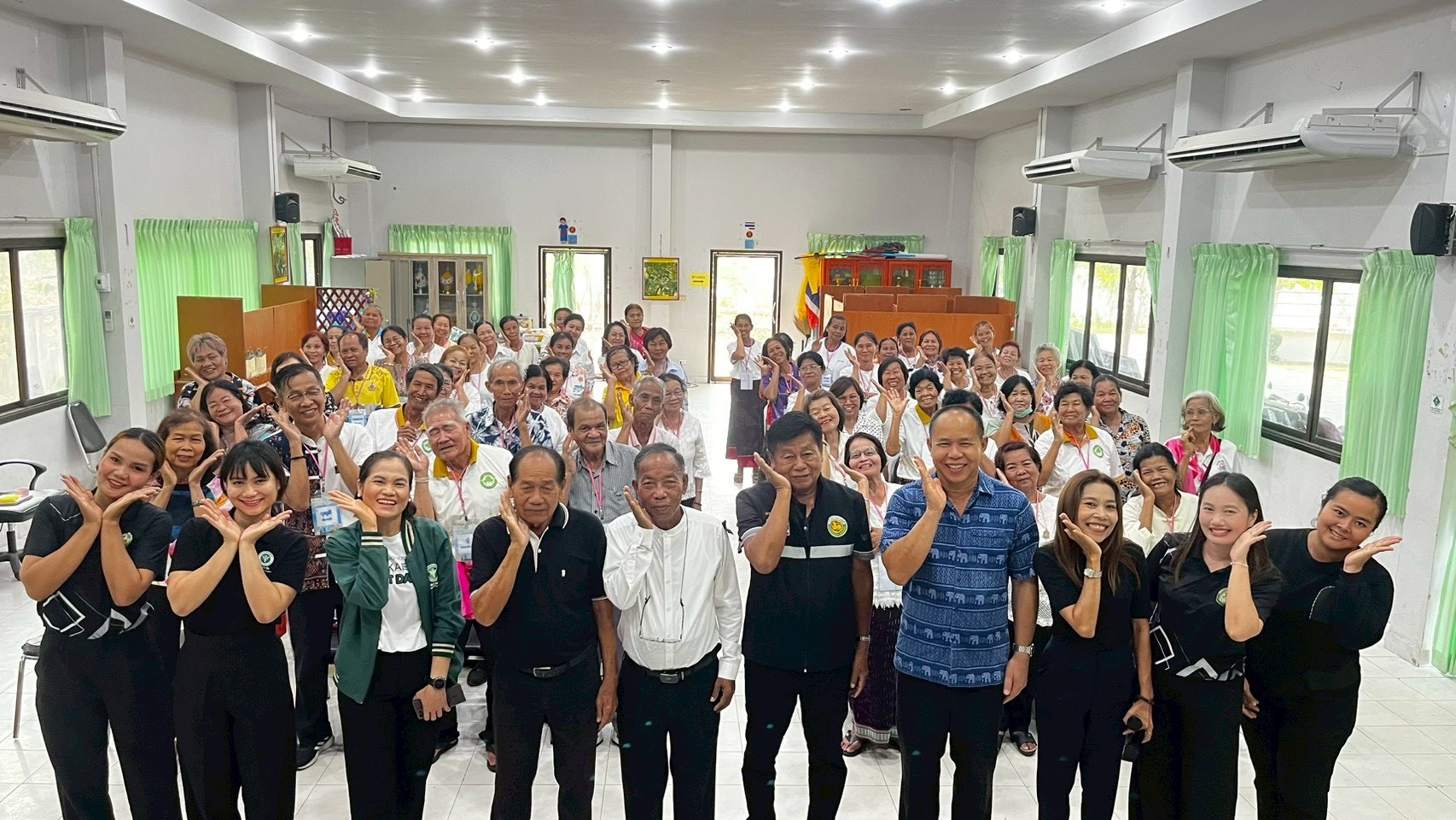 ผู้สูงอายุได้รวมกลุ่มทำกิจกรรมร่วมกันเป็นการสร้างคุณค่าให้ตัวเอง ผู้เข้าร่วมอบรม จำนวน 65 คน