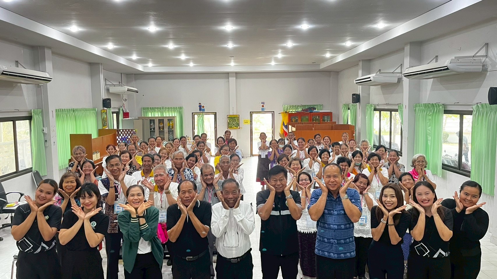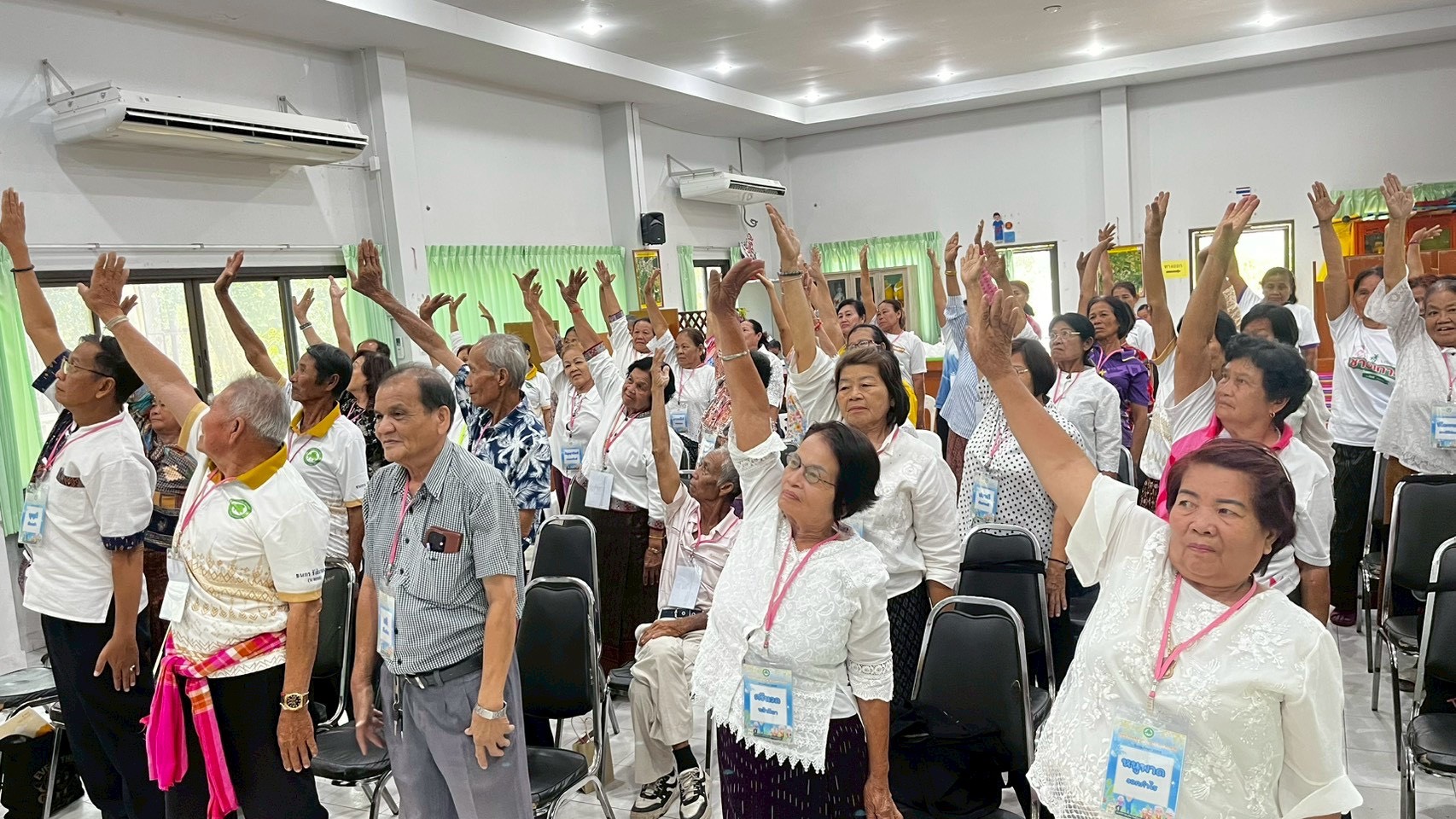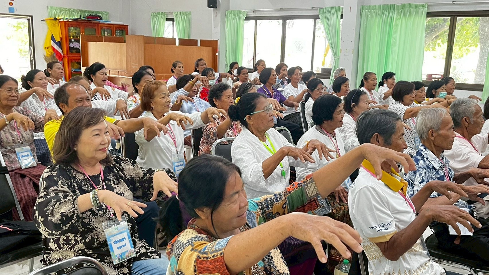 ผู้สูงอายุได้รวมกลุ่มทำกิจกรรมร่วมกันเป็นการสร้างคุณค่าให้ตัวเอง ผู้เข้าร่วมอบรม จำนวน 65 คน