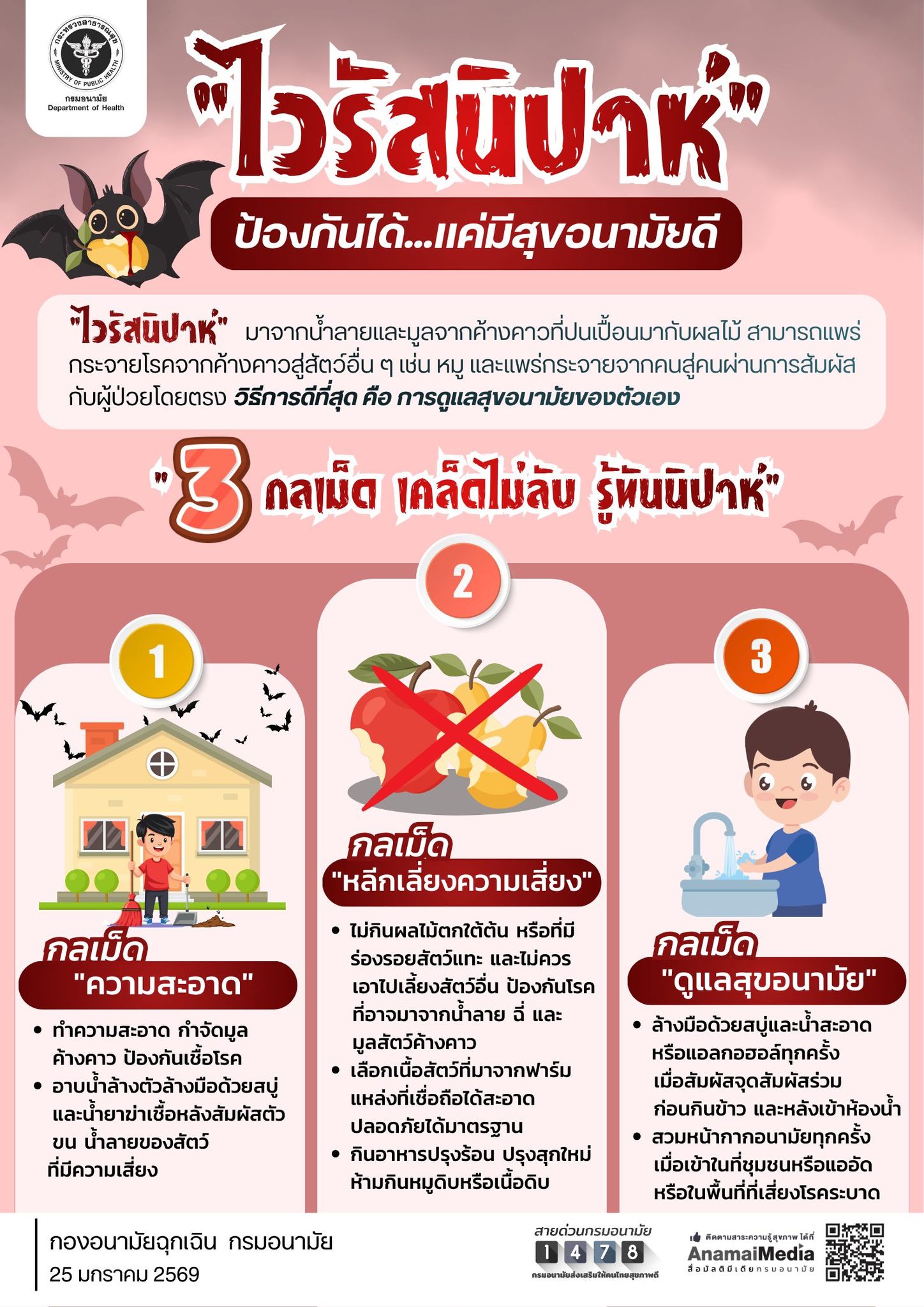 รู้ทัน "ไวรัสนิปาห์" เริ่มต้นง่ายๆ แค่เลือกกินและรักษาความสะอาด! ![]()
