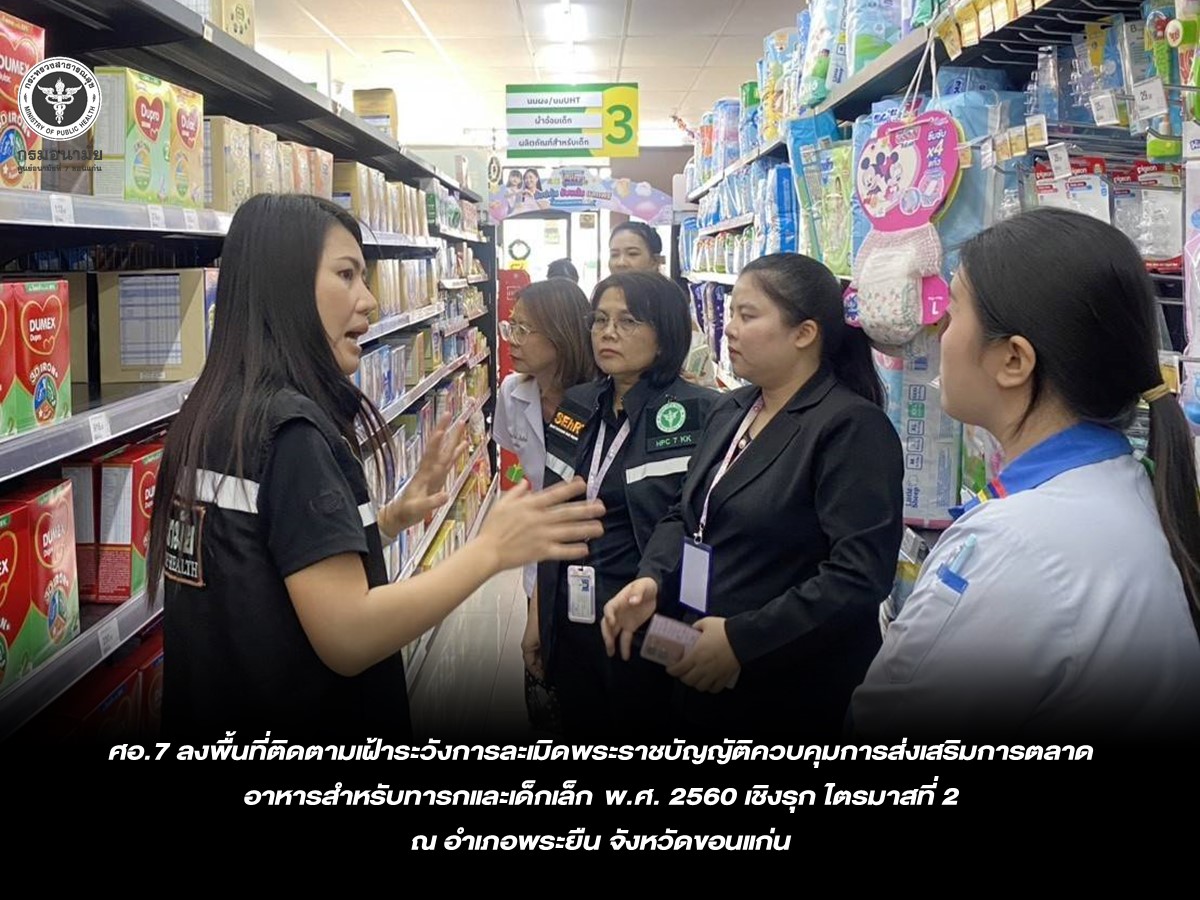 อ.7 ลงพื้นที่ติดตามเฝ้าระวังการละเมิดพระราชบัญญัติควบคุมการส่งเสริมการตลาด อาหารสำหรับทารกและเด็กเล็ก พ.ศ. 2560 เชิงรุก ไตรมาสที่ 2 ณ อำเภอพระยืน จังหวัดขอนแก่น