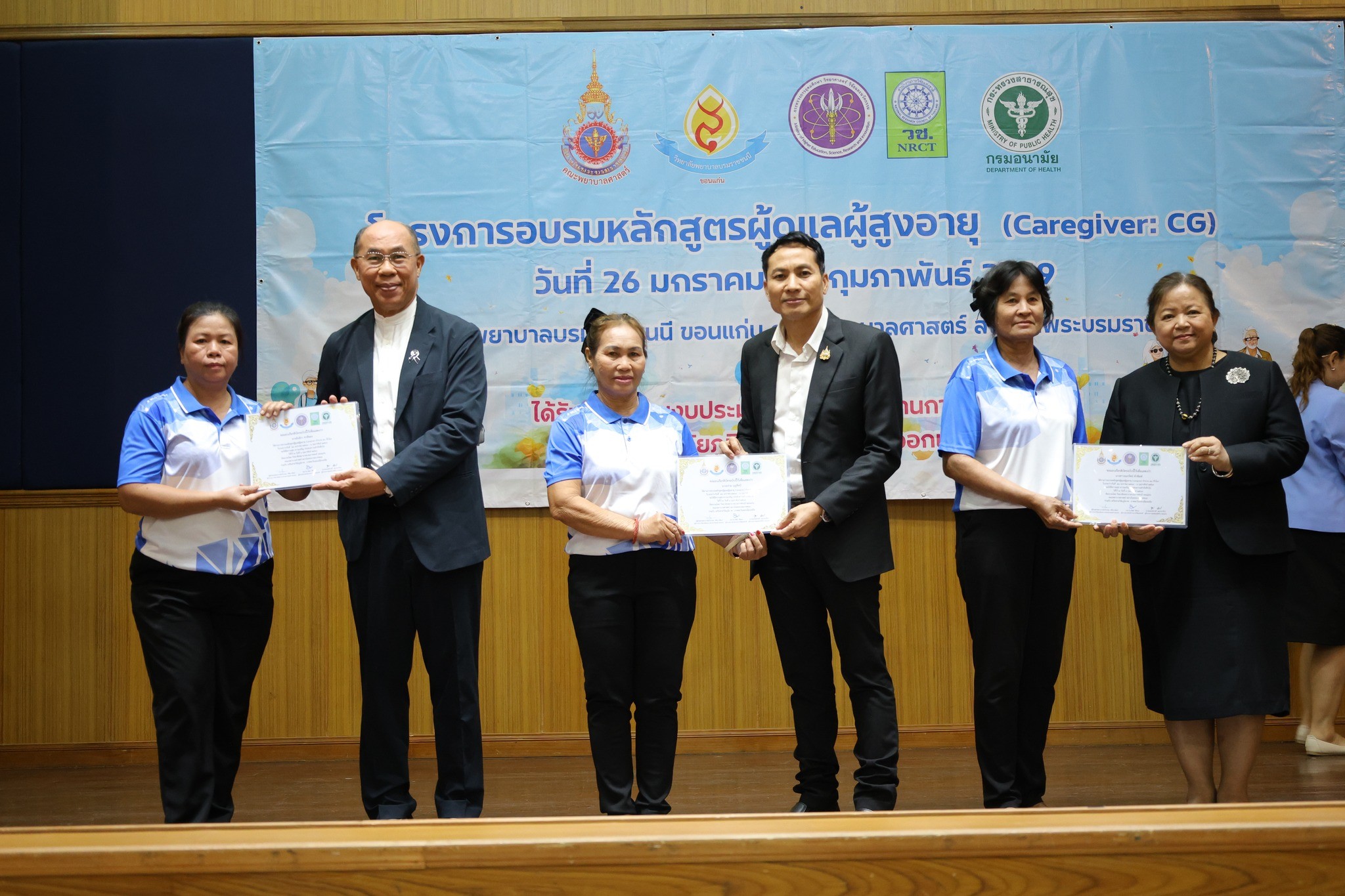 วันที่ 6 กุมภาพันธ์ 2569 นพ.ชาตรี เมธาธราธิป ผู้อำนวยการศูนย์อนามัยที่ 7 ขอนแก่น มอบหมายให้ ดร.สดุดี ภูห้องไสย หัวหน้ากลุ่มพัฒนาการส่งเสริมสุขภาพวัยสูงอายุ เข้าร่วมพิธีปิดการอบรม และมอบประกาศนียบัตรผู้ผ่านการอบรมหลักสูตรผู้ดูแลผู้สูงอายุ (Caregiver) 70 ชั่วโมง กรมอนามัย จำนวน 100 คน ซึ่งการอบรมดังกล่าวจัดร่วมกับ วิทยาลัยพยาบาลบรมราชชนี ขอนแก่น เครือข่ายวิจัยภูมิภาค ภาคตะวันออกเฉียงเหนือ และองค์การบริหารส่วนจังหวัดขอนแก่น ณ ศาลาประชาคม องค์การบริหารส่วนจังหวัดขอนแก่น