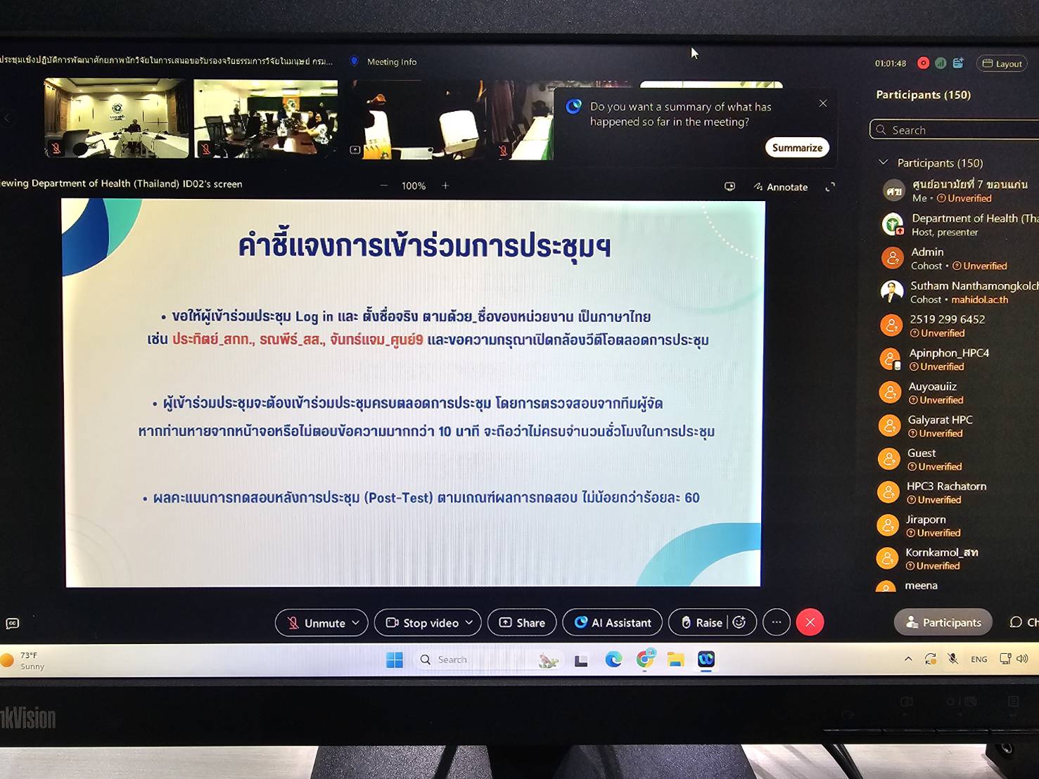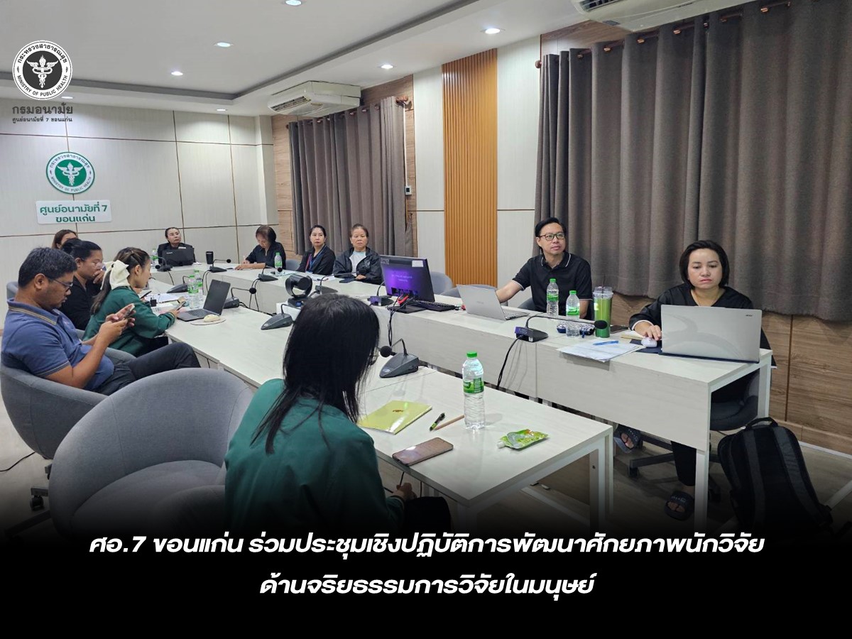 วันที่ 13 กุมภาพันธ์ 2569 นายแพทย์ชาตรี เมธาธราธิป ผู้อำนวยการศูนย์อนามัยที่ 7 ขอนแก่น มอบหมายให้ นางสุภาภรณ์ ศรีสุพรรณ หัวหน้ากลุ่มส่งเสริมการวิจัย นวัตกรรม และพัฒนาการเรียนรู้ พร้อมคณะเจ้าหน้าที่ เข้าร่วมการประชุมเชิงปฏิบัติการพัฒนาศักยภาพนักวิจัยในการเสนอขอพิจารณารับรองจริยธรรมการวิจัยในมนุษย์ ครั้งที่ 1 ซึ่งจัดโดย กรมอนามัย กระทรวงสาธารณสุข ณ ห้องประชุมสมบูรณ์ วัชโรทยา อาคาร 1 ชั้น 2 กรมอนามัย และผ่านระบบประชุมทางไกล (Video Conference) เพื่อพัฒนาศักยภาพบุคลากรด้านการวิจัย เสริมสร้างความรู้ความเข้าใจเกี่ยวกับหลักจริยธรรมพื้นฐาน กฎหมายที่เกี่ยวข้อง กระบวนการเสนอขอรับรองจริยธรรมการวิจัยในมนุษย์ การพิจารณาความเสี่ยงและมาตรการป้องกันอาสาสมัคร รวมถึงคุณภาพเครื่องมือวิจัย โดยมีการทำแบบทดสอบก่อนและหลังการอบรม เพื่อประเมินผลการเรียนรู้และยกระดับมาตรฐานการดำเนินงานวิจัยให้เป็นไปตามหลักวิชาการและจริยธรรม