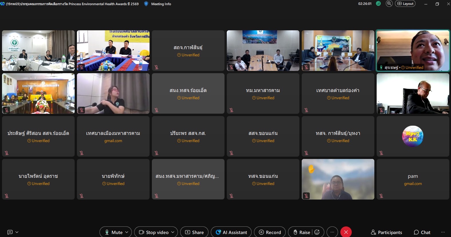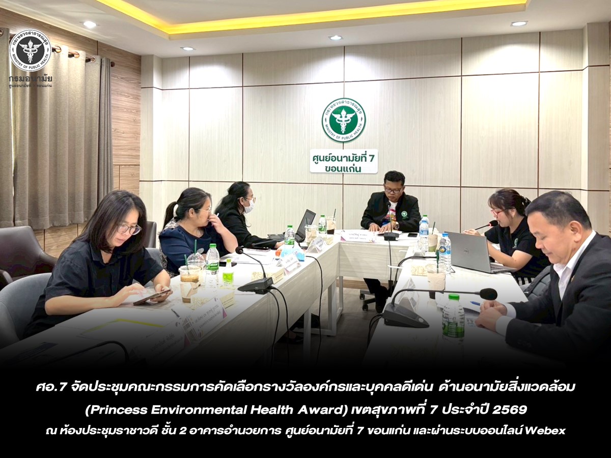 อ.7 จัดประชุมคณะกรรมการคัดเลือกรางวัลองค์กรและบุคคลดีเด่น ด้านอนามัยสิ่งแวดล้อม (Princess Environmental Health Award) เขตสุขภาพที่ 7 ประจำปี 2569 ณ ห้องประชุมราชาวดี ชั้น 2 อาคารอำนวยการ ศูนย์อนามัยที่ 7 ขอนแก่น และผ่านระบบออนไลน์ Webex