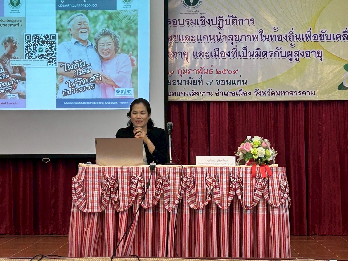 อ.7 ร่วมจัดอบรมเชิงปฏิบัติการพัฒนาศักยภาพบุคลากรสาธารณสุขและแกนนำสุขภาพในท้องถิ่นเพื่อขับเคลื่อนการดำเนินงานชมรมผู้สูงอายุ และเมืองที่เป็นมิตรกับผู้สูงอายุ จังหวัดมหาสารคาม