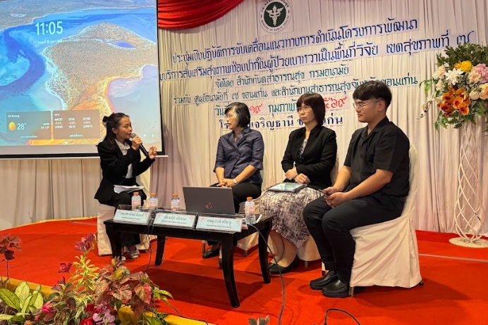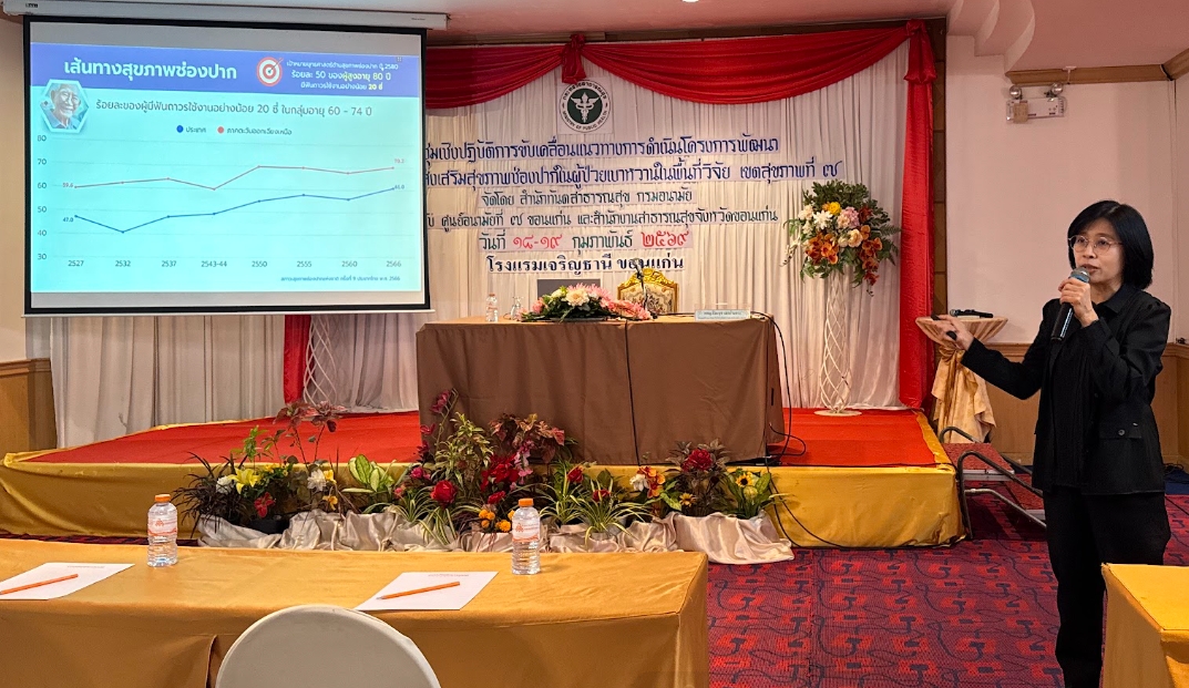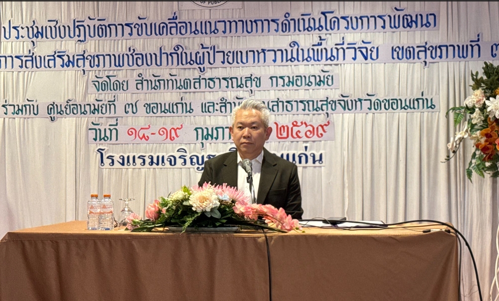 การประชุมครั้งนี้ จัดขึ้นระหว่างวันที่ 18 – 19 กุมภาพันธ์ พ.ศ. 2569 โดยสำนักทันตสาธารณสุข กรมอนามัย ร่วมกับศูนย์อนามัยที่ 7 ขอนแก่น และสำนักงานสาธารณสุขจังหวัดขอนแก่น กิจกรรมประกอบด้วย การอภิปรายเรื่องสถานการณ์ นโยบายและแผนปฏิบัติการส่งเสริมสุขภาพช่องปากผู้ป่วยเบาหวาน แนวทางปฏิบัติการรักษาทันตกรรมในผู้ป่วยเบาหวาน บรรยายเรื่อง การจัดการทางทันตกรรมตั้งแต่ปฐมภูมิถึงตติยภูมิในผู้ป่วยเบาหวาน การจัดบริการตามแนวทางการดูแลพฤติกรรมและจิตสังคมแบบบูรณาการดูแลสุขภาพช่องปากในคลินิก NCDs การจัดการไร้รอยต่อจากห้องผู้ป่วย NCDs บรรยายและฝึกปฏิบัติ การฝึกสติแบบสั้นบูรณาการกับเวชศาสตร์วิถีชีวิตในผู้ป่วยเบาหวาน และเครือข่าย MBBI และการอภิปรายกลุ่มย่อย การพัฒนารูปแบบบริการเพื่อเพิ่มการเข้าถึงและประสิทธิภาพในการดูแลสุขภาพช่องปากของผู้ป่วยเบาหวาน ผู้เข้าร่วมประชุม ประกอบด้วย ทันตแพทย์ เจ้าพนักงานทันตสาธารณสุขและบุคลากรสาธารณสุข จากหน่วยบริการระดับปฐมภูมิและทุติยภูมิในจังหวัดขอนแก่น รวมทั้งสิ้น 40 คน