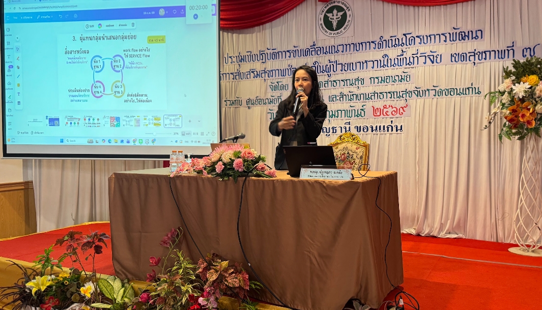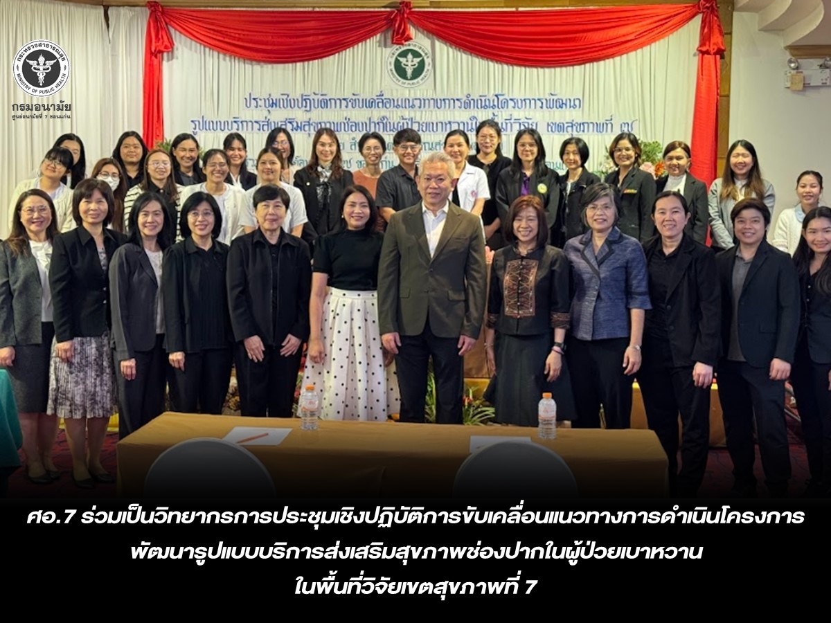 อ.7 ร่วมเป็นวิทยากรการประชุมเชิงปฏิบัติการขับเคลื่อนแนวทางการดำเนินโครงการพัฒนารูปแบบบริการส่งเสริมสุขภาพช่องปากในผู้ป่วยเบาหวาน ในพื้นที่วิจัยเขตสุขภาพที่ 7