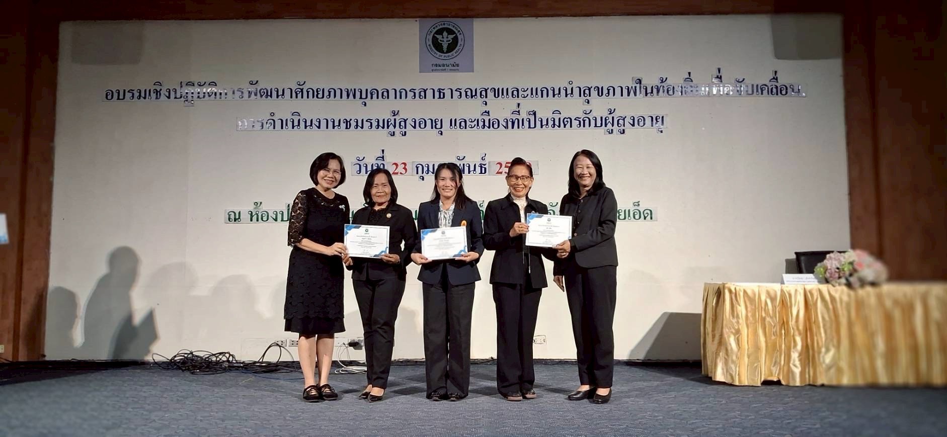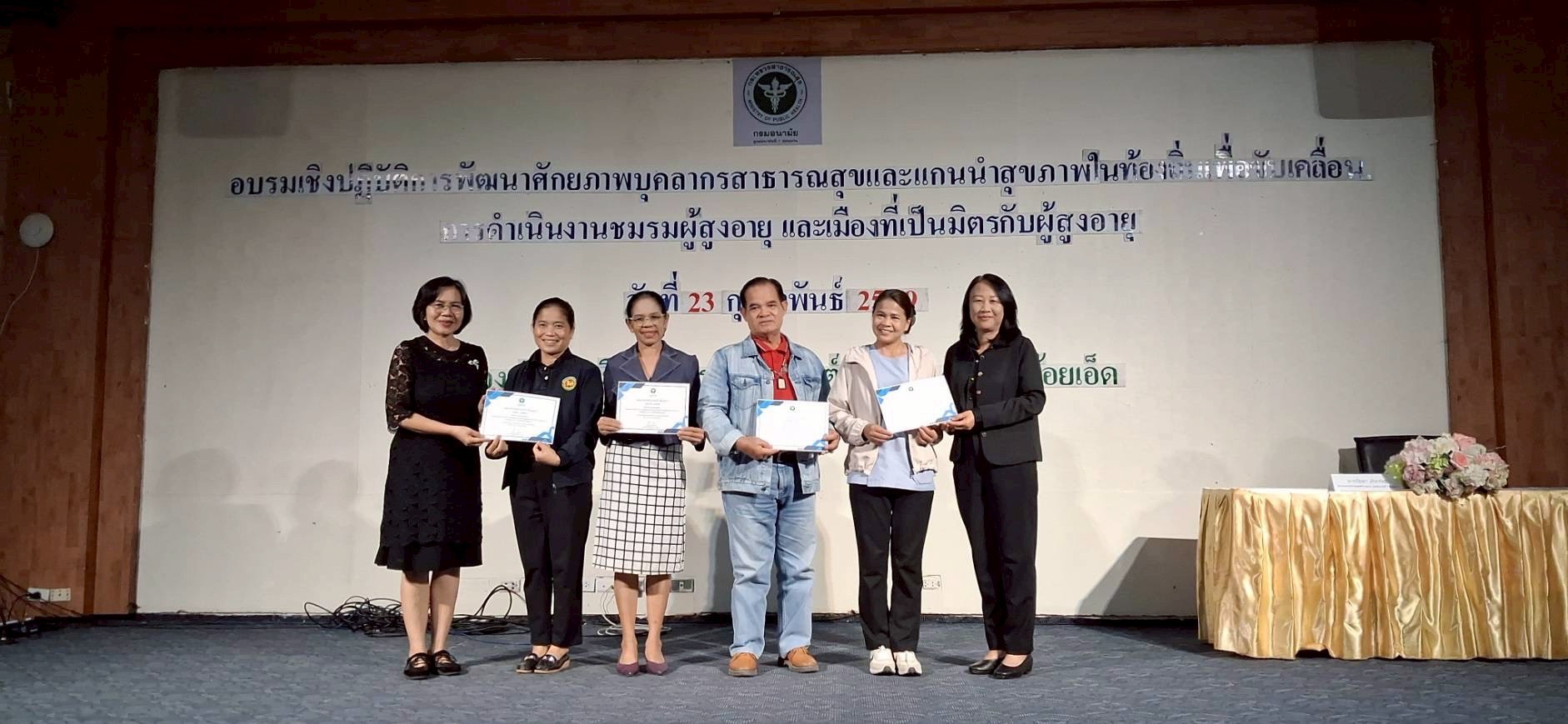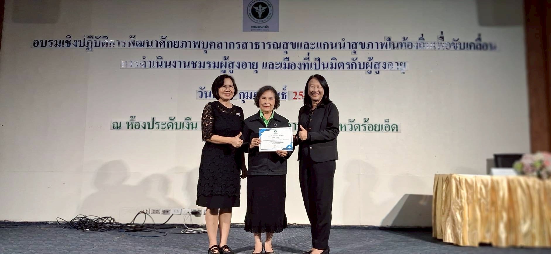 อ.7 ขอนแก่น จัดอบรมเชิงปฏิบัติการพัฒนาศักยภาพบุคลากรสาธารณสุข และแกนนำสุขภาพในท้องถิ่น เพื่อขับเคลื่อนการดำเนินงานชมรมผู้สูงอายุและเมืองที่เป็นมิตร กับผู้สูงอายุ ณ โรงแรมเพชรรัตน์ จ.ร้อยเอ็ด