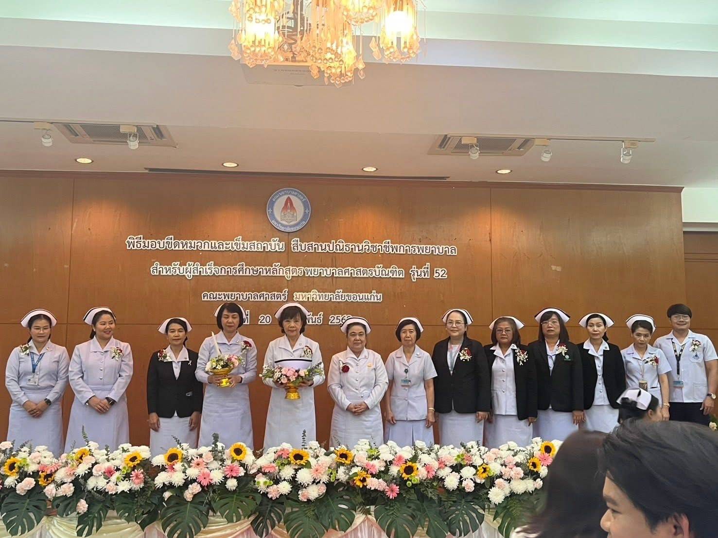 วันที่ 20 กุมภาพันธ์ 2569 คณะพยาบาลศาสตร์ มหาวิทยาลัยขอนแก่น จัดพิธีมอบ “ขีดหมวกและเข็มสถาบัน ประจำปีการศึกษา 2568” แก่นักศึกษาหลักสูตรพยาบาลศาสตรบัณฑิต ชั้นปีที่ 4 รุ่นที่ 52 ณ คณะพยาบาลศาสตร์ มหาวิทยาลัยขอนแก่น โดย ดร.ปิยะนันท์ โพธิชัย หัวหน้ากลุ่มการพยาบาล โรงพยาบาลศูนย์อนามัยที่ 7 ขอนแก่น พร้อมคณะ เข้าร่วมเป็นเกียรติในพิธีพิธีดังกล่าวจัดขึ้นเพื่อมอบขีดหมวกและเข็มสถาบัน ซึ่งเป็นสัญลักษณ์แห่งความภาคภูมิใจ แสดงถึงการสำเร็จการศึกษาภาคทฤษฎี และความพร้อมของนักศึกษาในการก้าวเข้าสู่วิชาชีพการพยาบาลอย่างสมบูรณ์ โดยเป็นการยืนยันถึงความรู้ ความสามารถ และคุณสมบัติในการประกอบวิชาชีพต่อไป
