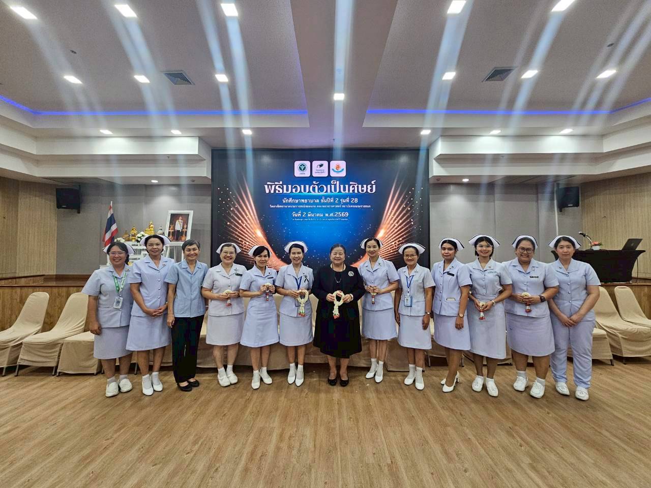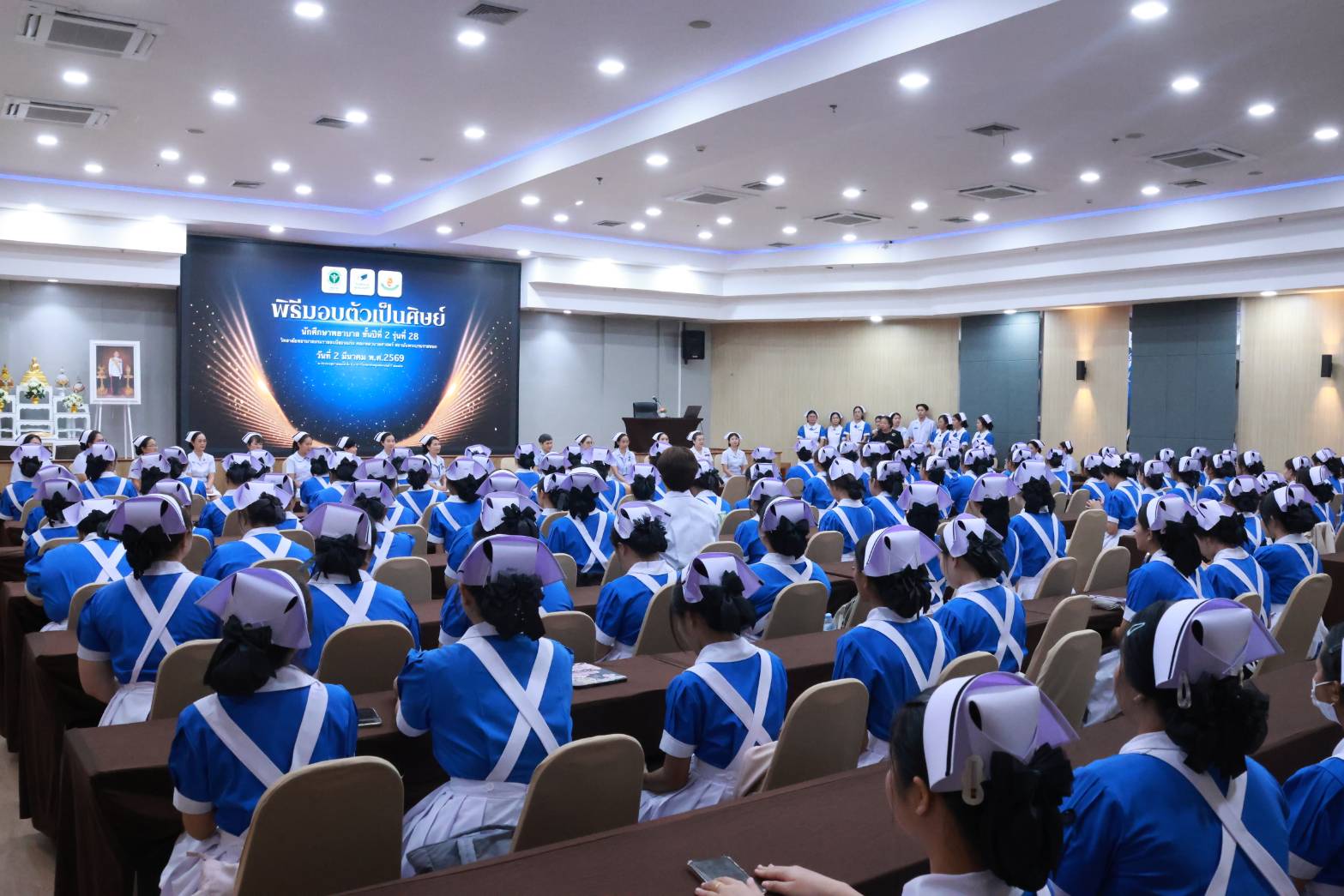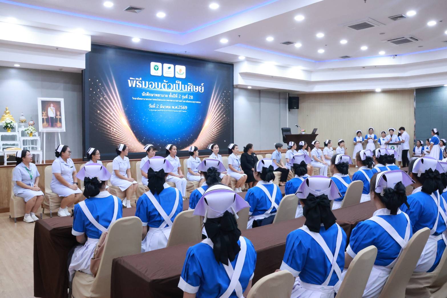 วันที่ 2 มีนาคม 2569 นพ.ชาตรี เมธาธราธิป ผู้อำนวยการศูนย์อนามัยที่ 7 ขอนแก่น มอบหมายให้ ดร.ปิยะนันท์ โพธิชัย หัวหน้ากลุ่มการพยาบาล และหัวหน้างาน โรงพยาบาลศูนย์อนามัยที่ 7 ขอนแก่น เข้าร่วมพิธีมอบตัวเป็นศิษย์ของนักศึกษาพยาบาล วิทยาลัยพยาบาลบรมราชชนนี ขอนแก่น ชั้นปีที่ 2 รุ่นที่ 28 ณ ห้องประชุมราชพฤกษ์ ชั้น 6 อาคารโรงพยาบาลศูนย์อนามัยที่ 7 ขอนแก่น โดยพิธีดังกล่าวจัดขึ้นเพื่อเสริมสร้างความสัมพันธ์ระหว่างนักศึกษา อาจารย์ และหน่วยฝึกปฏิบัติ ตลอดจนปลูกฝังคุณธรรม จริยธรรม และความเป็นวิชาชีพพยาบาลแก่นักศึกษา เพื่อเตรียมความพร้อมก่อนก้าวสู่การฝึกปฏิบัติงานในสถานบริการสุขภาพต่อไป