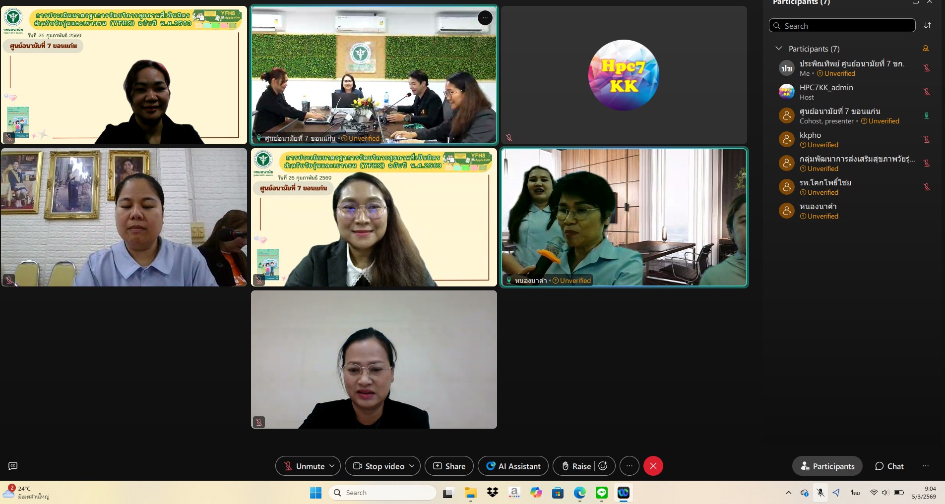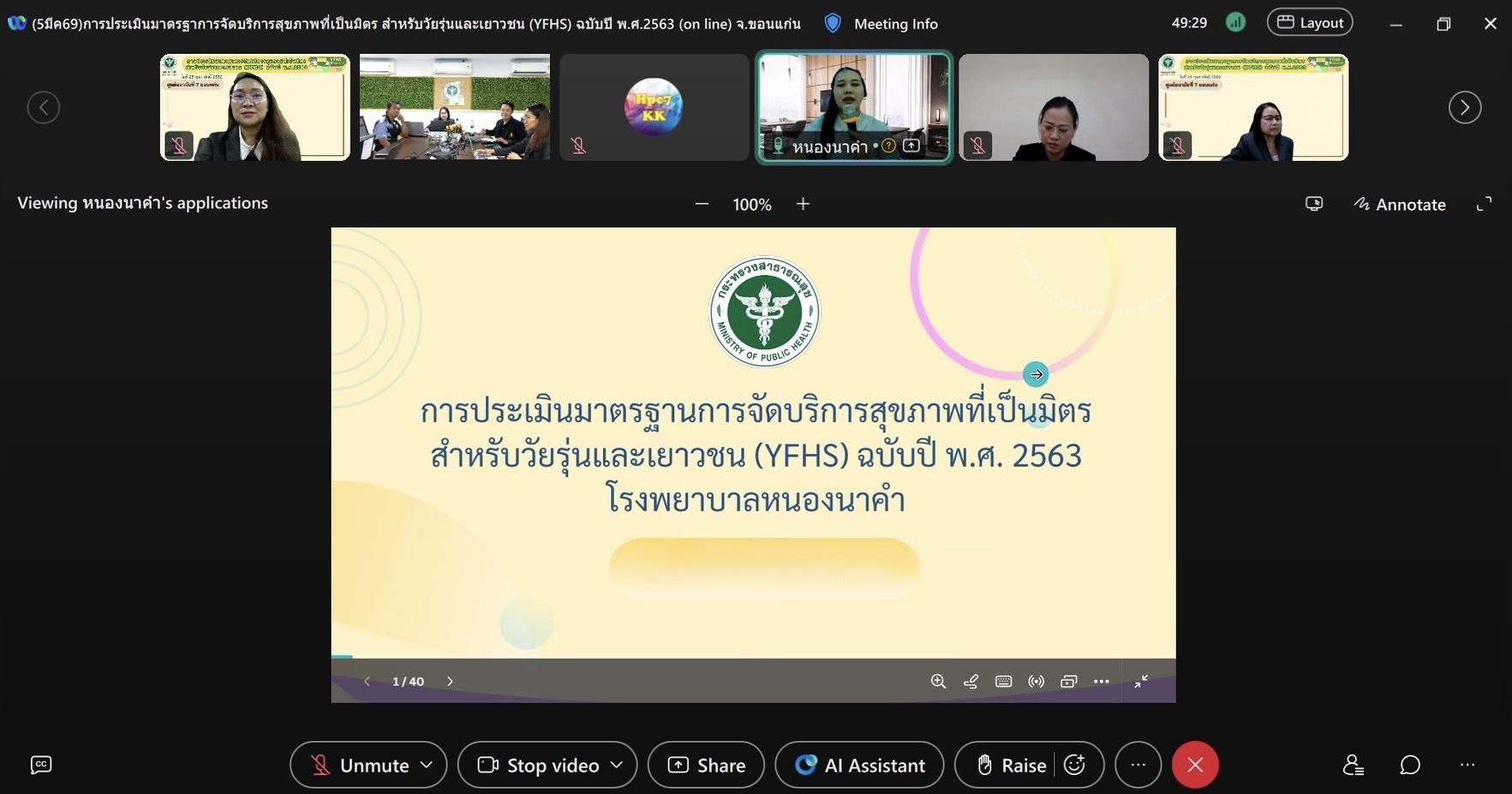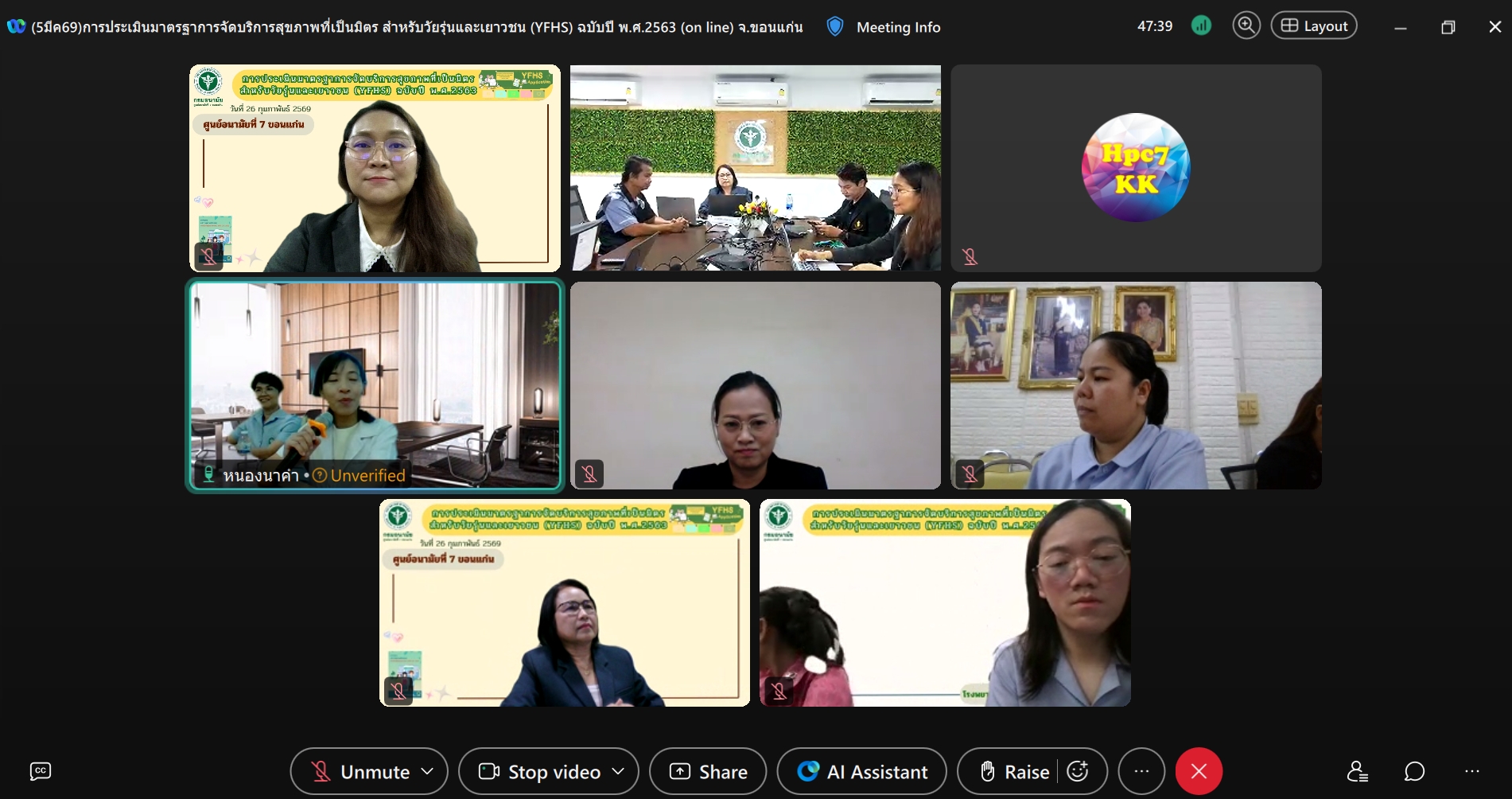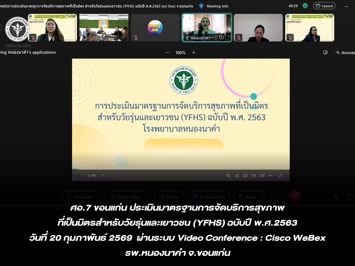 อ.7 ขอนแก่น ประเมินมาตรฐานการจัดบริการสุขภาพ ที่เป็นมิตรสำหรับวัยรุ่นและเยาวชน (YFHS) ฉบับปี พ.ศ.2563 ผ่านระบบ Video Conference : Cisco WeBex รพ.หนองนาคำ จ.ขอนแก่น