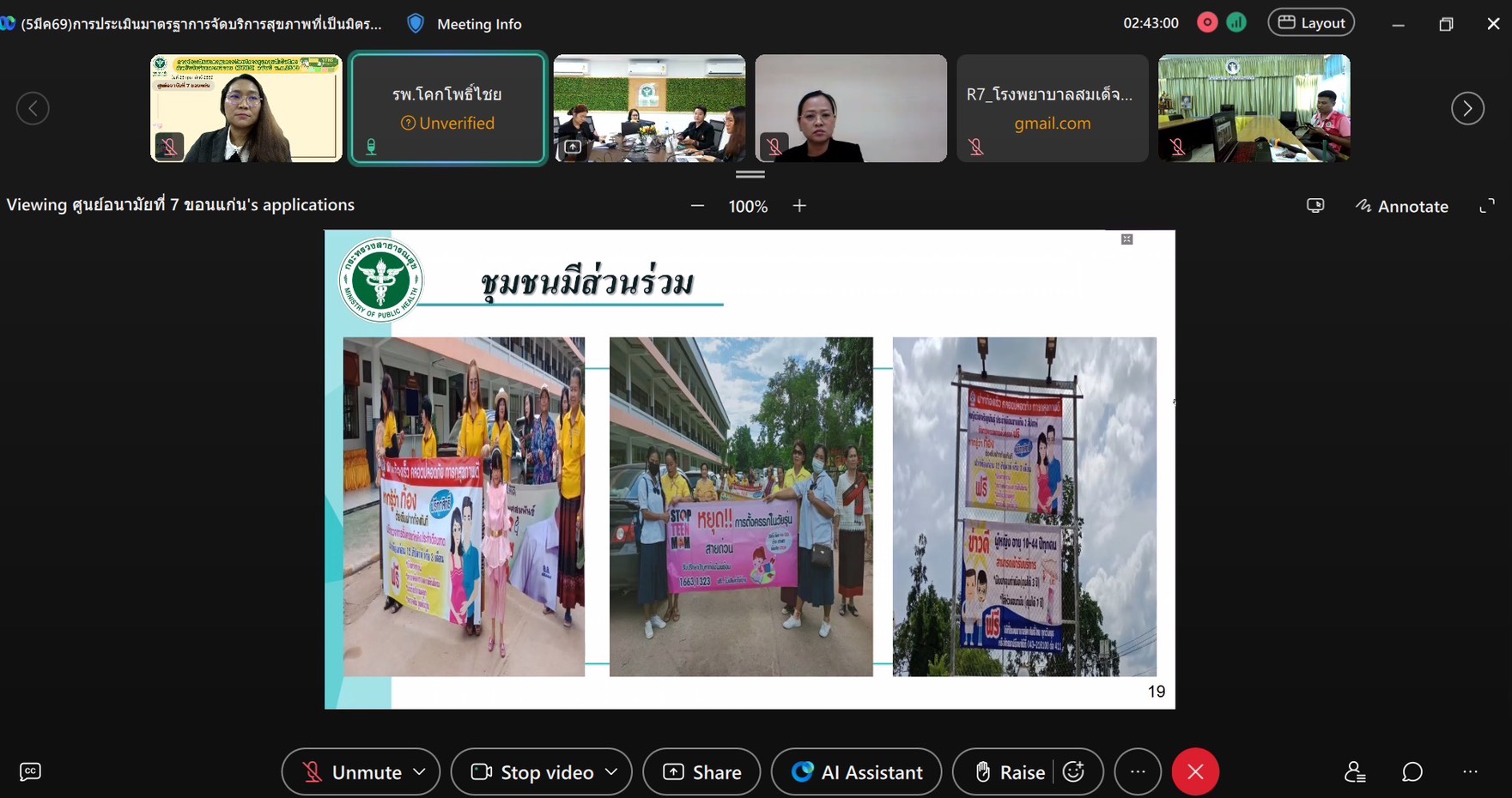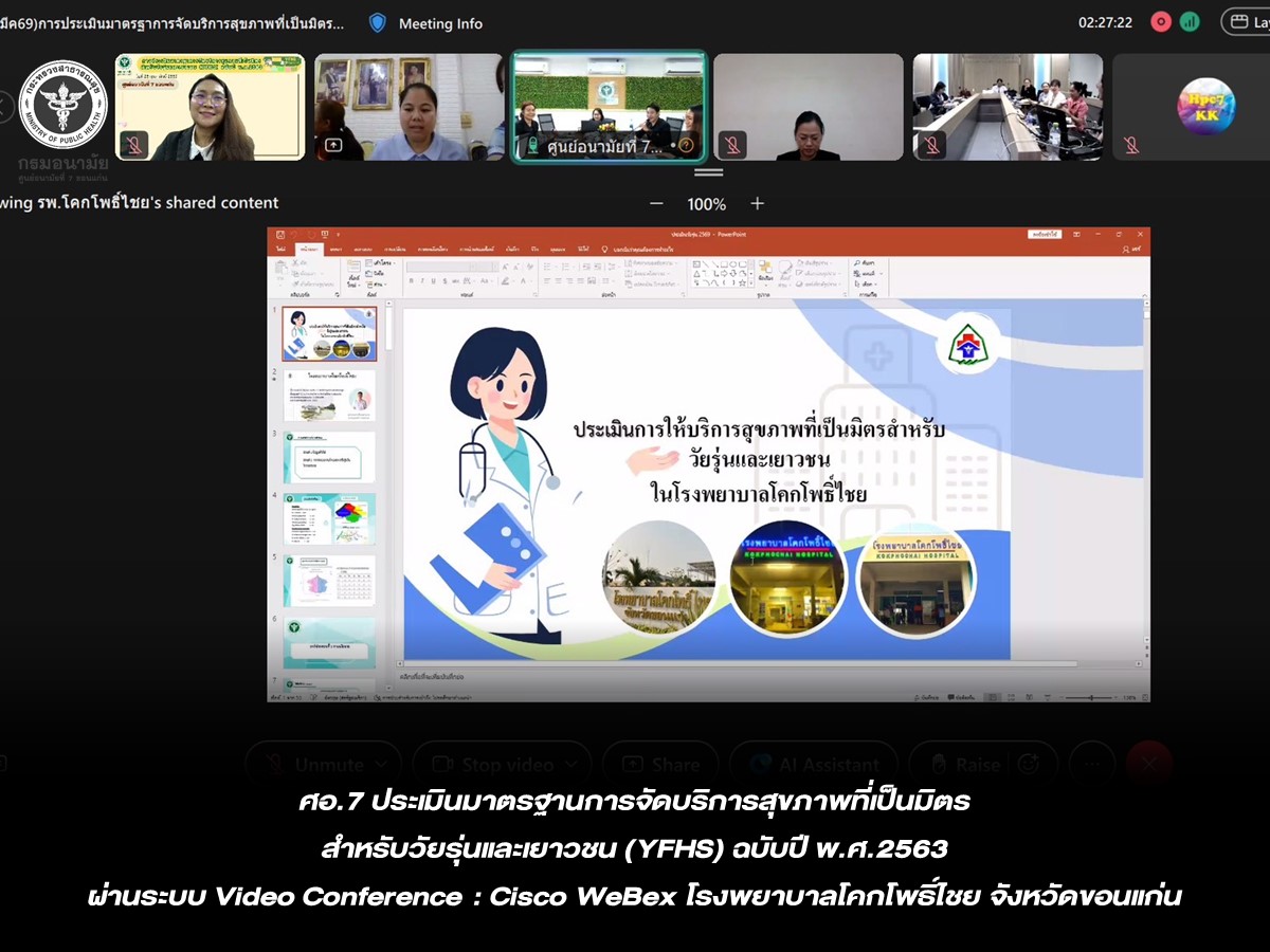 อ.7 ประเมินมาตรฐานการจัดบริการสุขภาพที่เป็นมิตร สำหรับวัยรุ่นและเยาวชน (YFHS) ฉบับปี พ.ศ.2563 ผ่านระบบ Video Conference : Cisco WeBex โรงพยาบาลโคกโพธิ์ไชย จังหวัดขอนแก่น