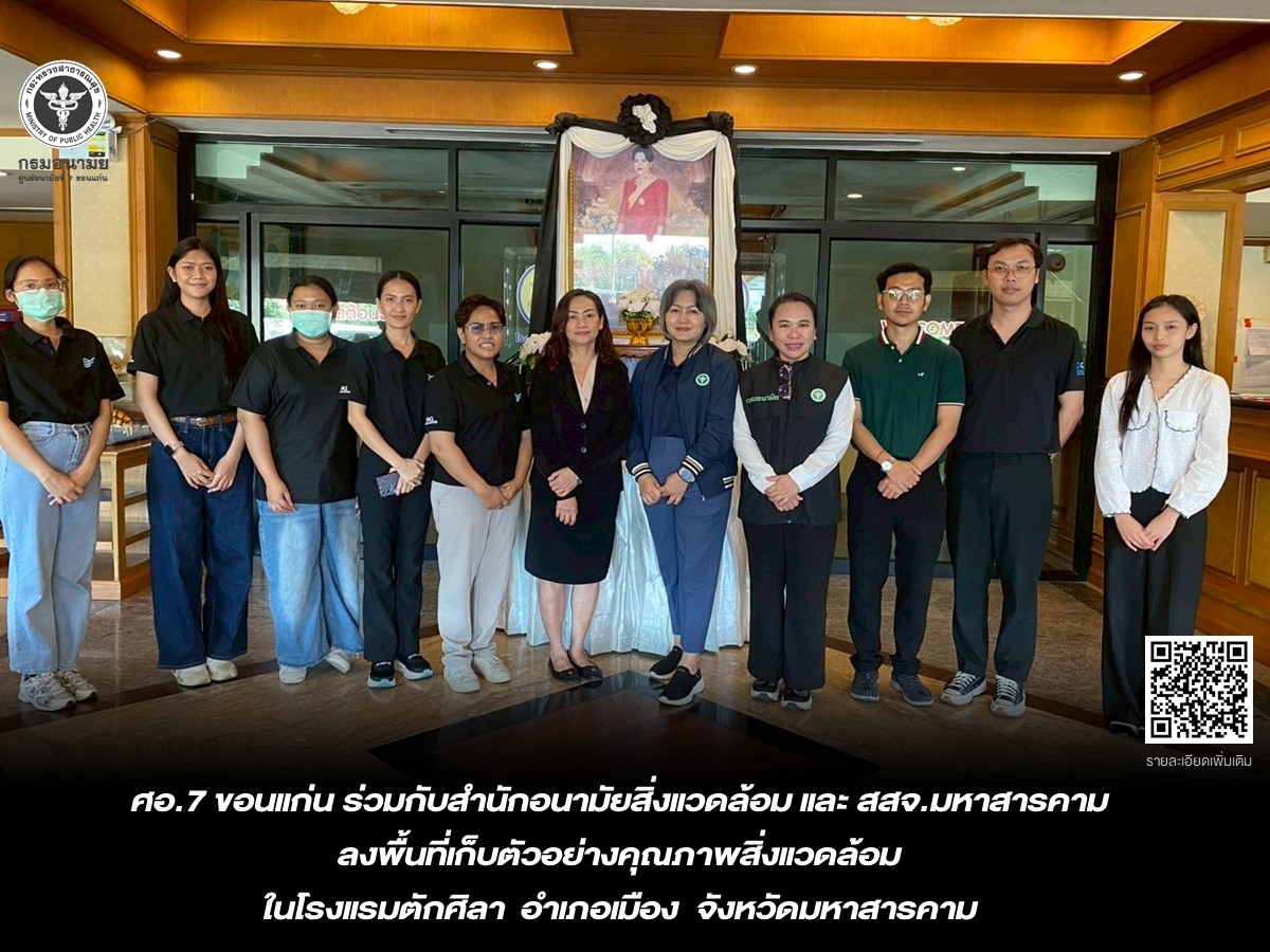 อ.7 ขอนแก่น ร่วมกับสำนักอนามัยสิ่งแวดล้อม และ สสจ.มหาสารคาม ลงพื้นที่เก็บตัวอย่างคุณภาพสิ่งแวดล้อม ในโรงแรมตักศิลา อำเภอเมือง จังหวัดมหาสารคาม