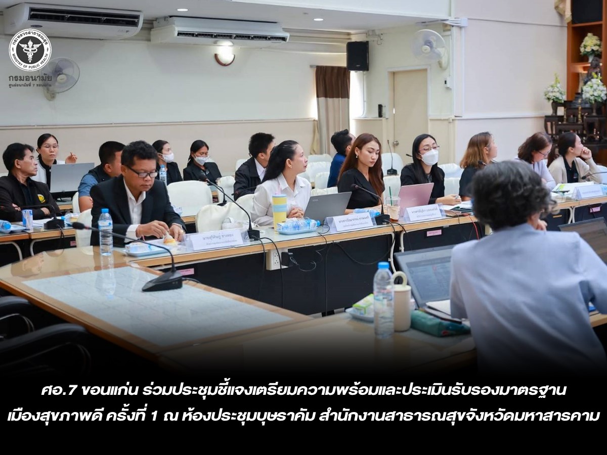 วันที่ 13 มีนาคม 2569 นายแพทย์ชาตรี เมธาธราธิป ผู้อำนวยการศูนย์อนามัยที่ 7 ขอนแก่น มอบหมายให้ นายสุวิศิษฎ์ ช่างทอง นักวิชาการสาธารณสุขชำนาญการพิเศษ หัวหน้ากลุ่มพัฒนาอนามัยสิ่งแวดล้อม ศูนย์อนามัยที่ 7 ขอนแก่น พร้อมคณะเจ้าหน้าที่ เข้าร่วมประชุมชี้แจงเตรียมความพร้อมและประเมินรับรองมาตรฐานเมืองสุขภาพดี ครั้งที่ 1 ณ ห้องประชุมบุษราคัม สำนักงานสาธารณสุขจังหวัดมหาสารคาม จัดโดย สำนักงานสาธารณสุขจังหวัดมหาสารคาม โดยมีวัตถุประสงค์เพื่อส่งเสริมและสนับสนุนให้องค์กรปกครองส่วนท้องถิ่น นำกรอบแนวคิดและเกณฑ์ชี้วัดเมืองสุขภาพดีไปใช้เป็นเครื่องมือในการกำหนดทิศทางการพัฒนาเมืองไปสู่เป้าหมาย เพื่อให้เกิดการยกระดับการดำเนินงานอนามัยสิ่งแวดล้อมที่สอดคล้องกับสถานการณ์ปัญหาของแต่ละบริบทพื้นที่ พัฒนาองค์ความรู้ และประเมินรับรองมาตรฐาน ให้แก่เจ้าหน้าที่เจ้าหน้าที่องค์กรปกครองส่วนท้องถิ่นให้สามารถดำเนินการพัฒนาเมืองสุขภาพดีให้ได้มาตรฐานนั้น กลุ่มเป้าหมายประกอบด้วย คณะอาจารย์จากศูนย์อนามัยที่ 7 ขอนแก่น เจ้าหน้าที่จากสำนักงานสาธารณสุขอำเภอ และองค์กรปกครองส่วนท้องถิ่นที่สมัครเข้ารับการประเมินรับรอง จำนวน 19 แห่ง
