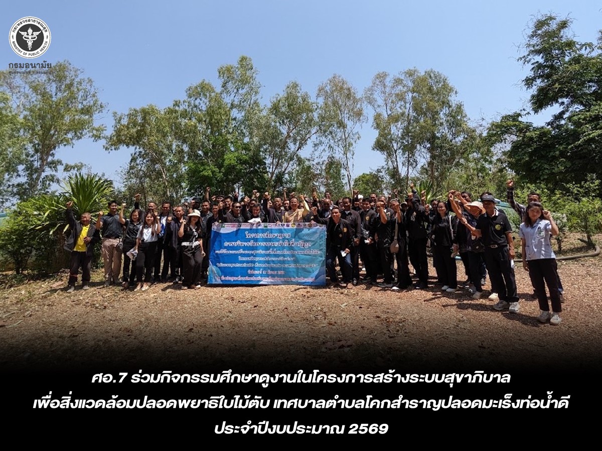 วันที่ 17 มีนาคม 2569 นายแพทย์ชาตรี เมธาธราธิป ผู้อำนวยการศูนย์อนามัยที่ 7 ขอนแก่น มอบหมายเจ้าหน้าที่กลุ่มพัฒนาอนามัยสิ่งแวดล้อม ร่วมกิจกรรมศึกษาดูงานในโครงการสร้างระบบสุขาภิบาลเพื่อสิ่งแวดล้อมปลอดพยาธิใบไม้ตับ เทศบาลตำบลโคกสำราญปลอดมะเร็งท่อน้ำดี ประจำปีงบประมาณ 2569 โดยการสนับสนุนของสำนักงานการวิจัยแห่งชาติ ณ ระบบสิ่งปฏิกูลต้นแบบขององค์การบริหารส่วนตำบลนาเชือก อำเภอยางตลาด จังหวัดกาฬสินธุ์ ซึ่งจัดโดย เทศบาลตำบลโคกสำราญ อำเภอบ้านแฮด จังหวัดขอนแก่น ร่วมกับ ศูนย์บริการเทคโนโลยีสาธารณสุขและสิ่งแวดล้อม คณะสาธารณสุขศาสตร์ มหาวิทยาลัยขอนแก่น นำโดย ผศ.ดร.ฤทธิรงค์ จังโกฏิ หัวหน้าโครงการฯ ร่วมกับ ศูนย์อนามัยที่ 7 ขอนแก่น สำนักงานป้องกันควบคุมโรคที่ 7 ขอนแก่น โดยการศึกษาดูงานครั้งนี้ นายเดชรัช ภูทะวัง นายกองค์การบริหารส่วนตำบลนาเชือก ให้เกียรติเป็นประธานกล่าวต้อนรับคณะดูงาน ซึ่งประกอบด้วยคณะผู้บริหาร สมาชิกสภาฯ คณะทำงาน พนักงานเทศบาลตำบลโคกสำราญ กำนัน ผู้ใหญ่บ้าน คณะกรรมการหมู่บ้าน และอาสาสมัครสาธารณสุขประจำหมู่บ้านตำบลโคกสำราญ อำเภอบ้านแฮด จังหวัดขอนแก่น จำนวนทั้งสิ้น 100 คน