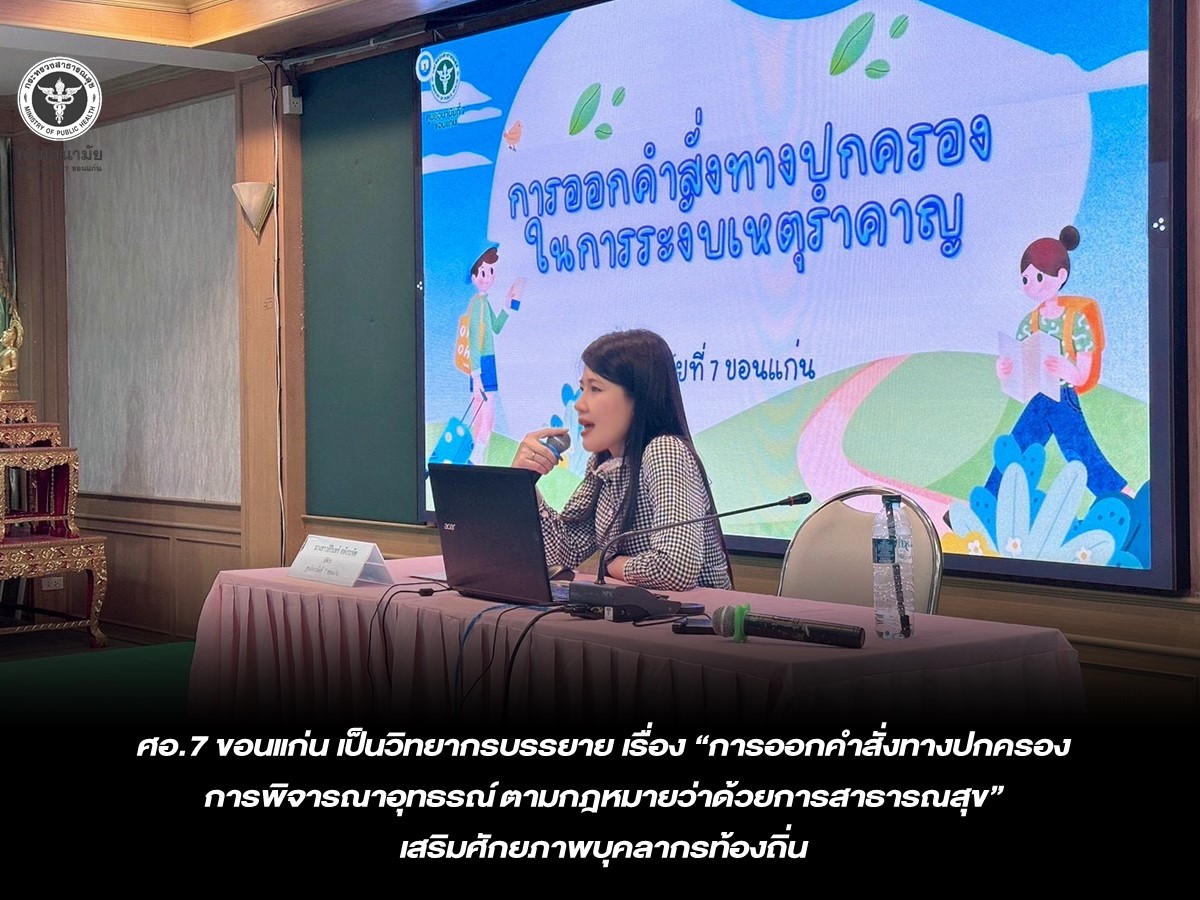 อ.7 ขอนแก่น เป็นวิทยากรบรรยาย เรื่อง “การออกคำสั่งทางปกครอง การพิจารณาอุทธรณ์ ตามกฎหมายว่าด้วยการสาธารณสุข” เสริมศักยภาพบุคลากรท้องถิ่น