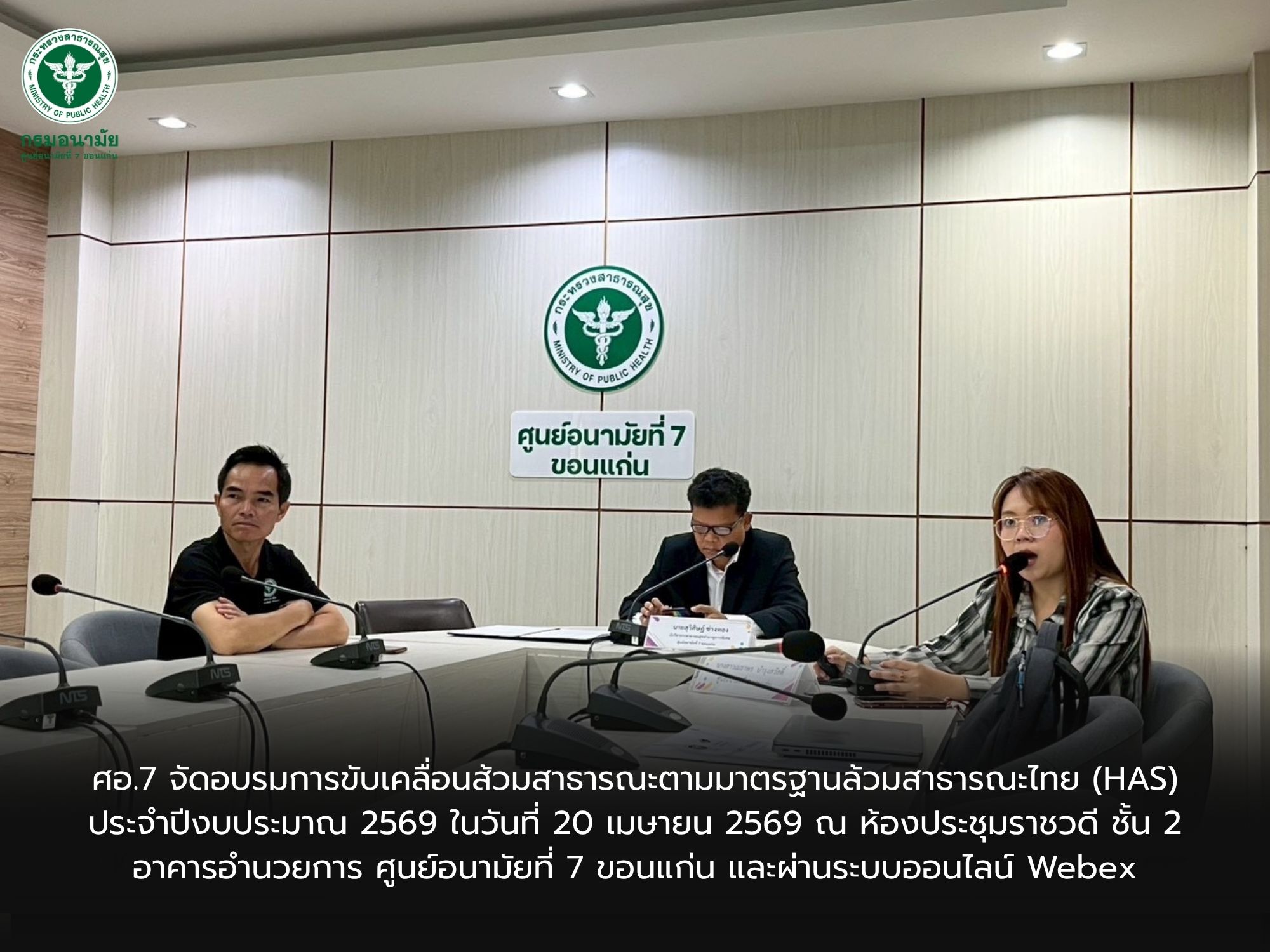 อ.7 จัดอบรมการขับเคลื่อนส้วมสาธารณะตามมาตรฐานล้วมสาธารณะไทย (HAS) ประจำปีงบประมาณ 2569 ในวันที่ 20 เมษายน 2569 ณ ห้องประชุมราชวดี ชั้น 2 อาคารอำนวยการ ศูนย์อนามัยที่ 7 ขอนแก่น และผ่านระบบออนไลน์ Webex